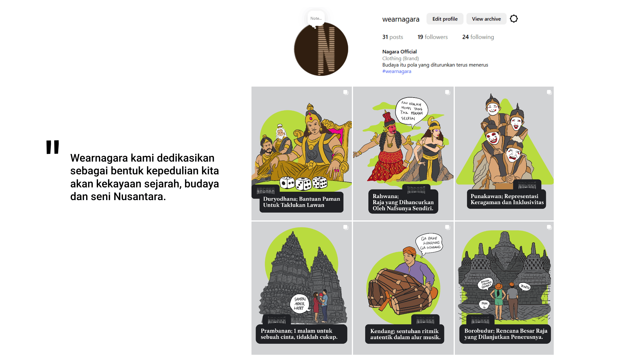 Didirikan oleh tiga pemuda asal Pekalongan yang ingin mengangkat seni, budaya dan warisan Nusantara ke panggung dunia melalui inovasi konten dan produk pakaian premium.